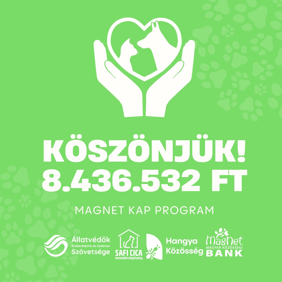 A MagNet Bank Közösségi Adományozási Programjában (KAP) adománygyűjtési lehetőséget biztosít társadalmi szervezetek számára. A programba 2024-ben jelentkeztünk a Safi Cicamenedék Alapítvánnyal és az Állatvédők Érdekvédelmi és Szakmai Szövetségével közösen.